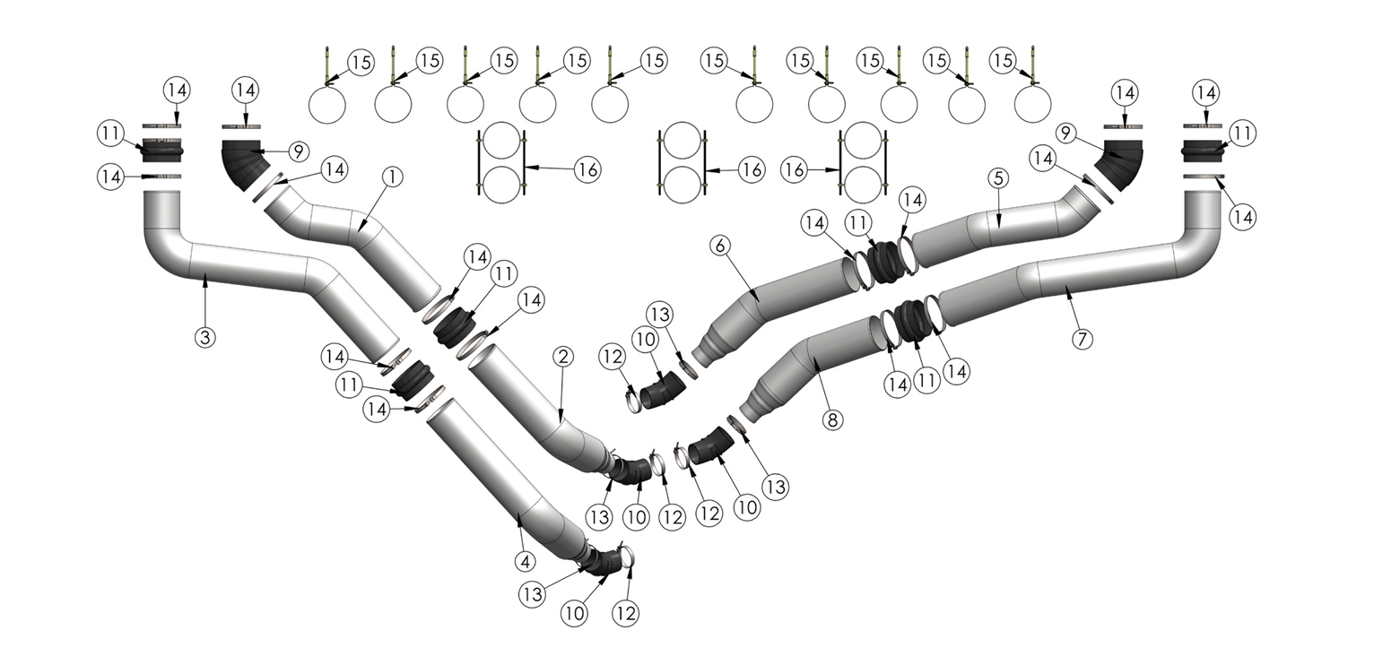 | 5 | 933QSK2-A5 | 10” To 10” Passenger Side Inner Canister Pipe | 1 |